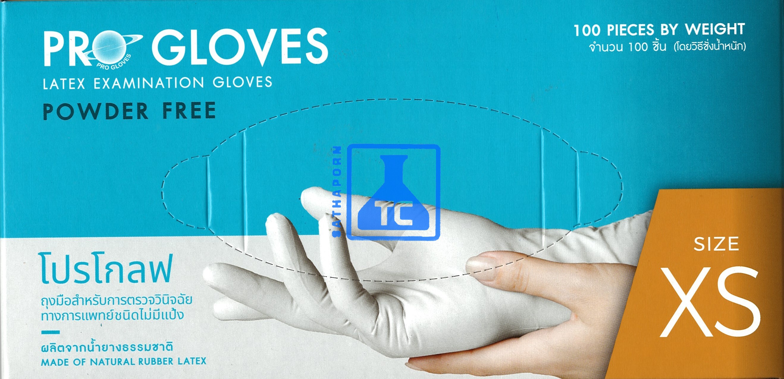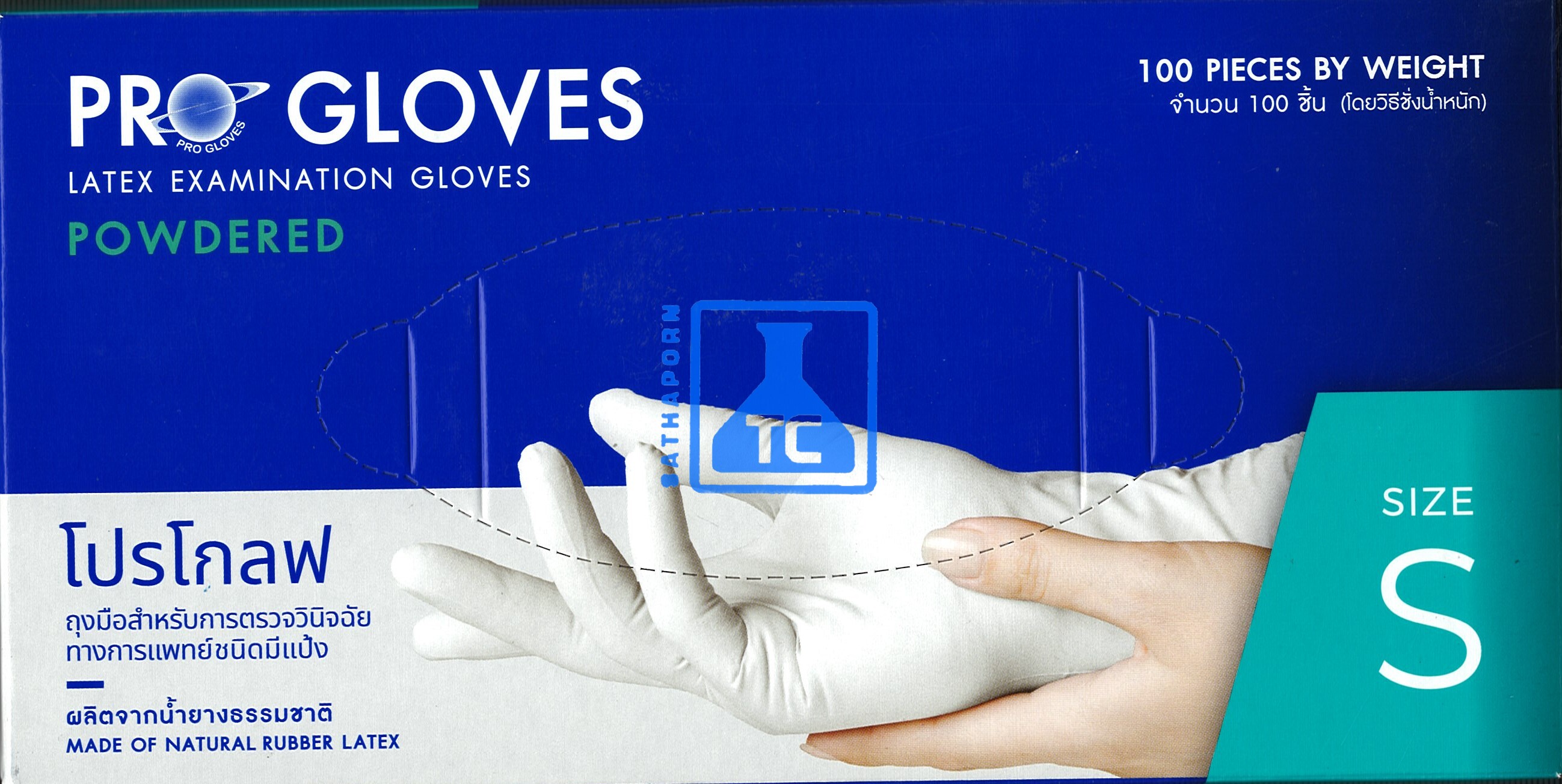 ถุงมือตรวจโรคใช้แล้วทิ้ง ชนิดมีแป้ง (Latex Examination Gloves)(PRO GLOVES)(โปรโกลฟ)