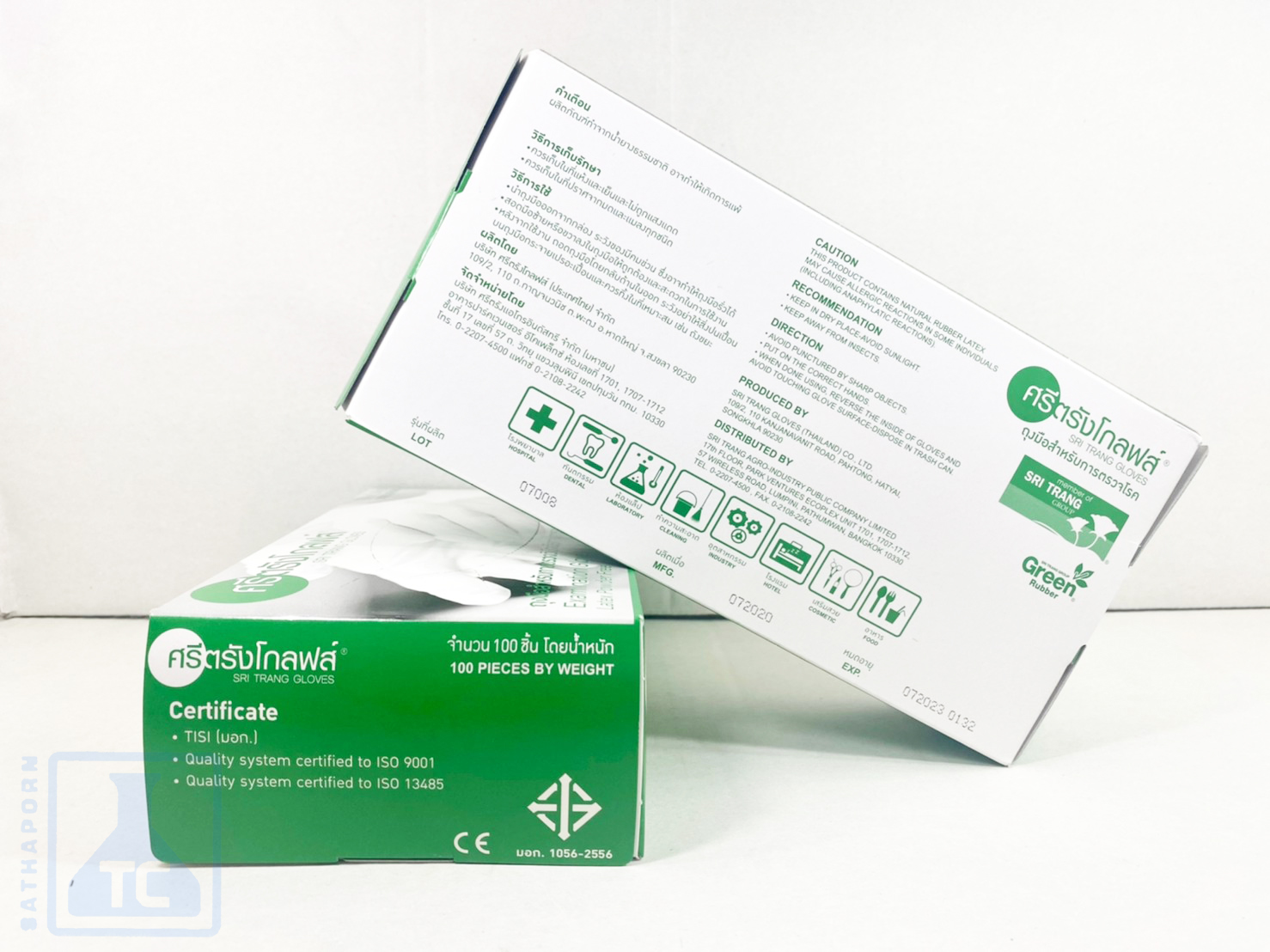 ถุงมือตรวจโรค ชนิดไม่มีแป้ง (Latex Powder Free Exam Gloves)(SRI TRANG)(ศรีตรัง)